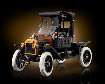 Celebrate an icon of automotive history with the LEGO® Icons Ford Model T (11376) model car kit for adults. This authentic replica of the 1910s automobile comes with a fold back fabric roof, fold-down split windshield and a single opening passenger door. Other features include an opening rear trunk and a highly detailed driver's cab with working steering. Lift the seat to access the gas tank. Lift the hood panels from both sides to reveal the engine and turn the crank to spin the fan. Finished with black bodywork, golden accents and tall spoked rims with slim white rubber tires, this vintage car decor model makes an elegant display for the home or office. This premium model makes a great gift idea for lovers of classic American cars. Discover the inspiring range of creative LEGO projects (sold separately) designed specifically for adults. Build smarter with the LEGO Builder app – zoom, rotate in 3D, track progress and follow step-by-step digital instructions. Set contains 1,060 pieces.